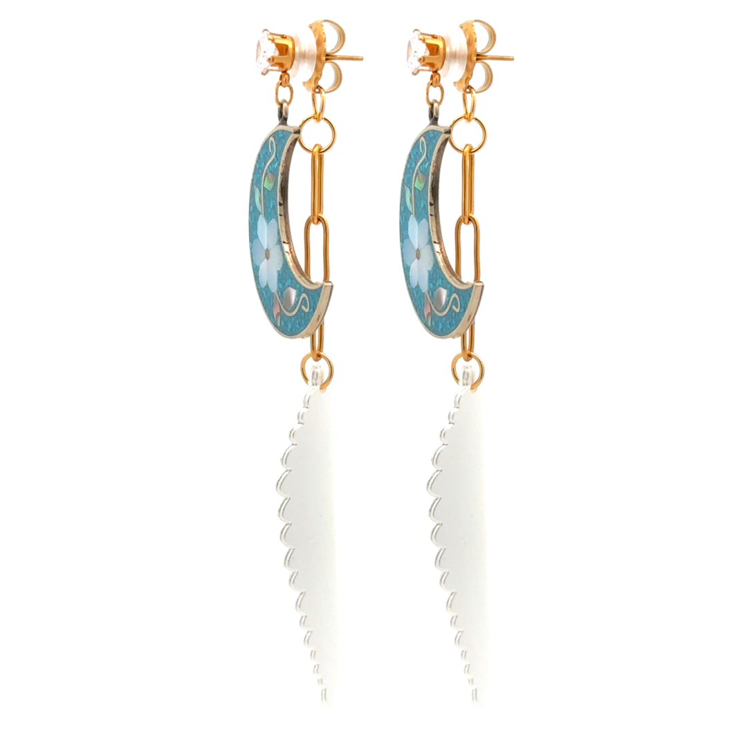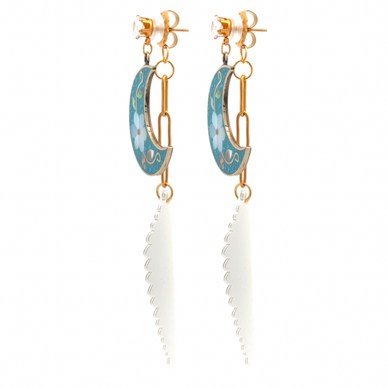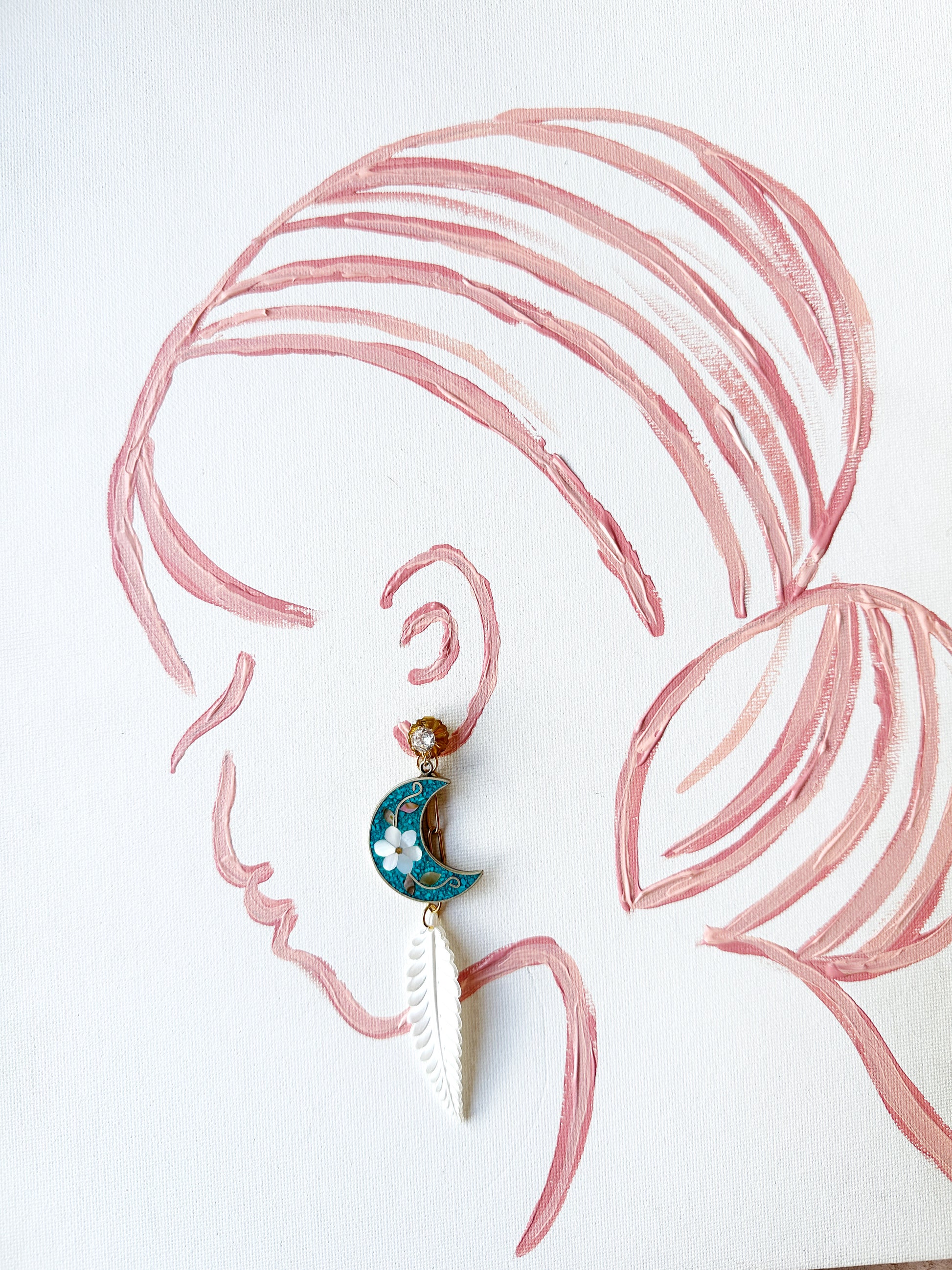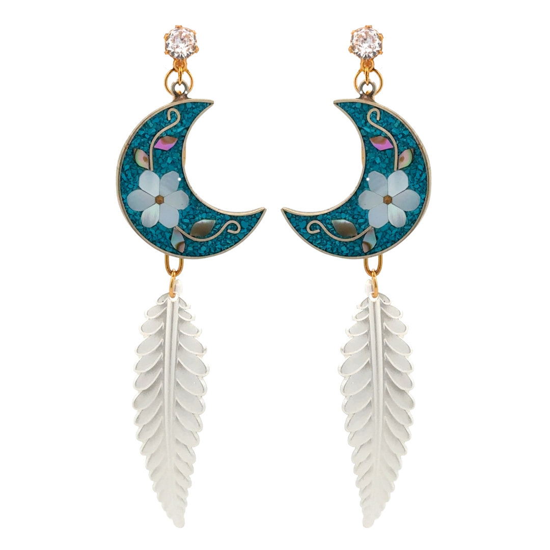 Your outfit is your Aura. You ensemble is made of energy. You are dressed in Undeniable Alreadyness. And you top it off with these 1970's turquoise and mother of pearl in-lay crescents accented with mother of pearl leaf backs!