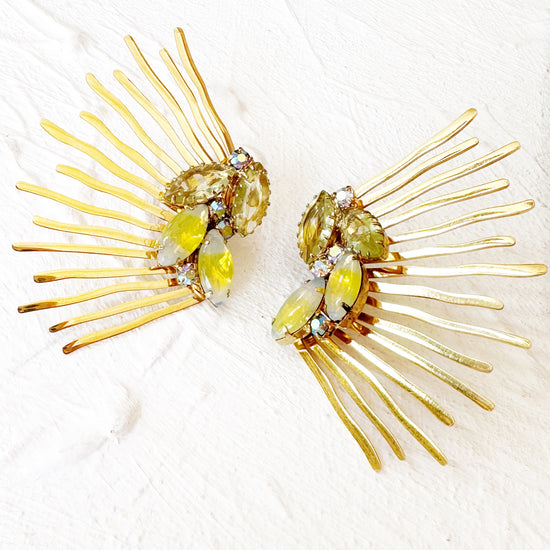 Come fly with us and take your jewelry to new heights! We have created custom, lightweight, tarnish-free wings as the perfect base for each curated mid-century vintage centerpiece! Let your dreams soar to new heights with these one-of-a-kind wings!